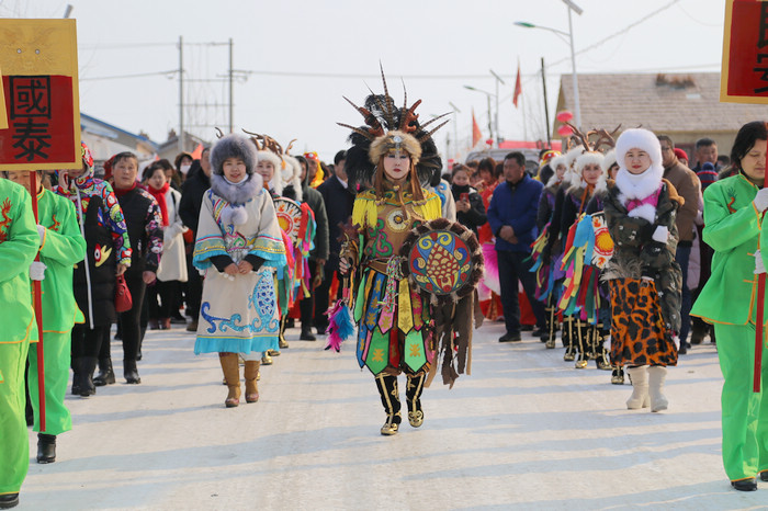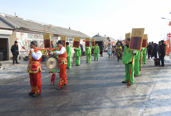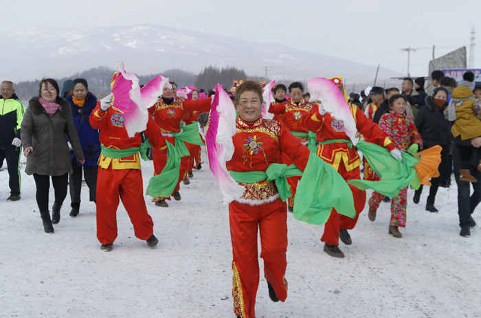 祈福仪式结束后,村民和游客们在村头的田地里扭起了欢快的东北大秧歌,锣鼓喧天,热闹非凡。