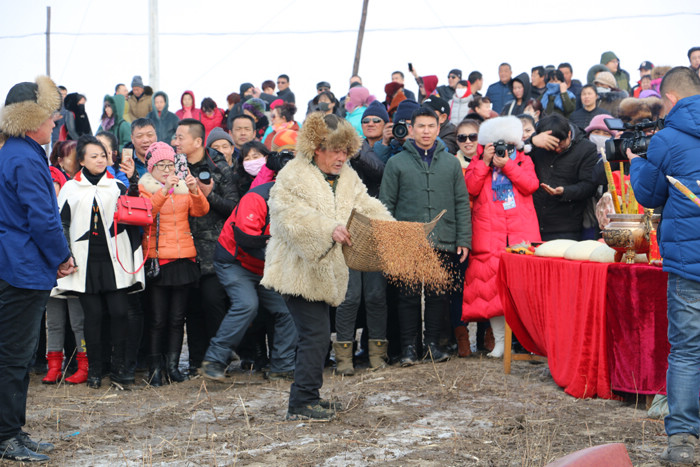 随着铿锵的锣鼓声,祈福的队伍出发了,整个小南河村的气氛被瞬间点燃,游客们跟随着队伍前进,用手机的相机记录着欢庆的时刻。大地回春,万物复苏,农耕在即,每年的这个时候小南河村的村民们都会用他们特有的方式庆祝一年一度的开耕节,大家聚在一起搓苞米、备种子,长者向地中扬几把种子,祭祀、祈福,祝愿一年能有一个好收成,独特的民俗,吸引了四面八方的游客。