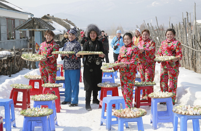 闹春耕的队伍中,两条长龙格外引人注目,它们伴随着锣鼓的节奏,时而盘旋,翻腾、时而窜走在秧歌队伍中,热闹的气氛让现场群众的情绪跟随着膨胀,共同预祝今年庄稼丰产丰收,生活越来越好。二月二吃饺子,也是北方民间的一种习俗,在开耕节这一天,小南河的村民们欢聚一堂,为游客们包起了像征幸福美满的饺子,大顶子山下第一村的百联饺子摆满了整条街。