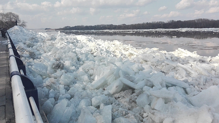 据了解,今年乌苏里江开江时间也是近年来比较早的一次,属于文开江,由于受冷空气的影响,气温回升较快,开江较往年早,开江水位有所下降。