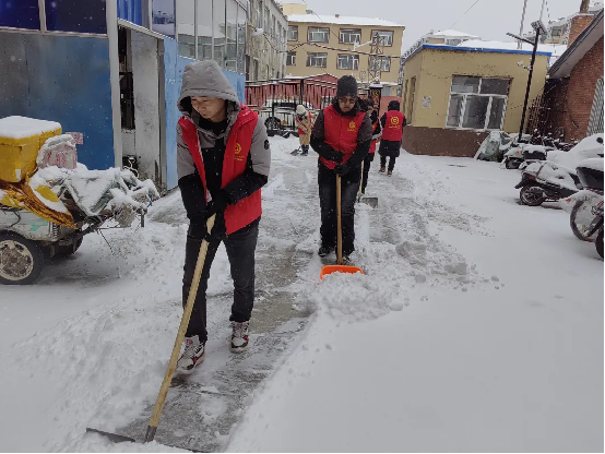 活动中,“橄榄绿”退役军人志愿者们手持扫帚、雪铲等工具来到包保小区开展清冰雪活动,志愿者们不畏寒冷,分工协作、互相配合,将小区内道路上的积雪和暗冰清除干净,打通了小区居民安全出行的通道,清雪过程中,志愿者们还不忘提醒居民注意防滑,避免摔倒。